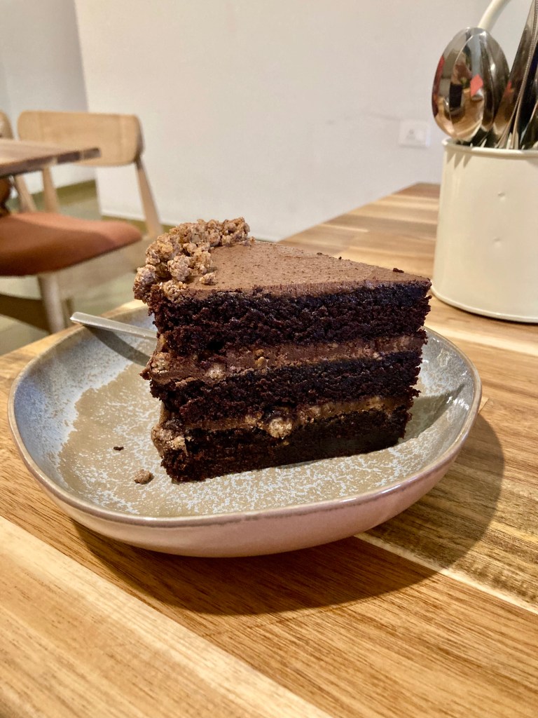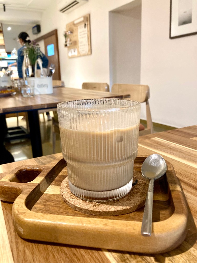 A casually hot day like most days in Chennai, I order an Iced Brown Sugar Latte with less sugar (it’s another story that I destroy an entire slice of chocolate cake just a few moments later) at the counter, where the enchanting dessert display catches my attention. It’s a limited assortment to choose from; brownies, cookies, puddings, cakes, pies and cookies, making you feel that each item might be worth a try. I go back to the table with a nagging feeling that leaving this place without trying at least one dessert might not be a prudent choice. The table next to me is raving about the Matcha, while another one is busy clicking their slice of chocolate cake. The place is buzzing with the right energy, enough for me to be with my thoughts without feeling detached from the action. A sweet sight unfolds in front of me, where a grandmother and grand-daughter duo are seen enjoying their individual chocolate cakes. “There must be something about the dessert here,” another nagging voice tugs at me as I’m still deciding my food. My perfectly sweetened Latte brings a smile to my face, and I feel comforted in ways that only a great cup of coffee can.